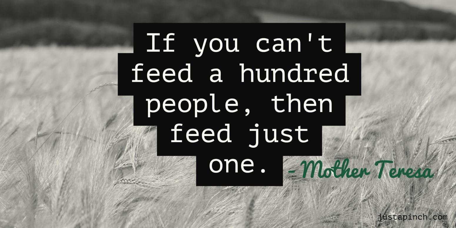 If you can’t feed a hundred people, then feed just one. Share on Facebook Share on Pinterest Share on X Share in Email Print