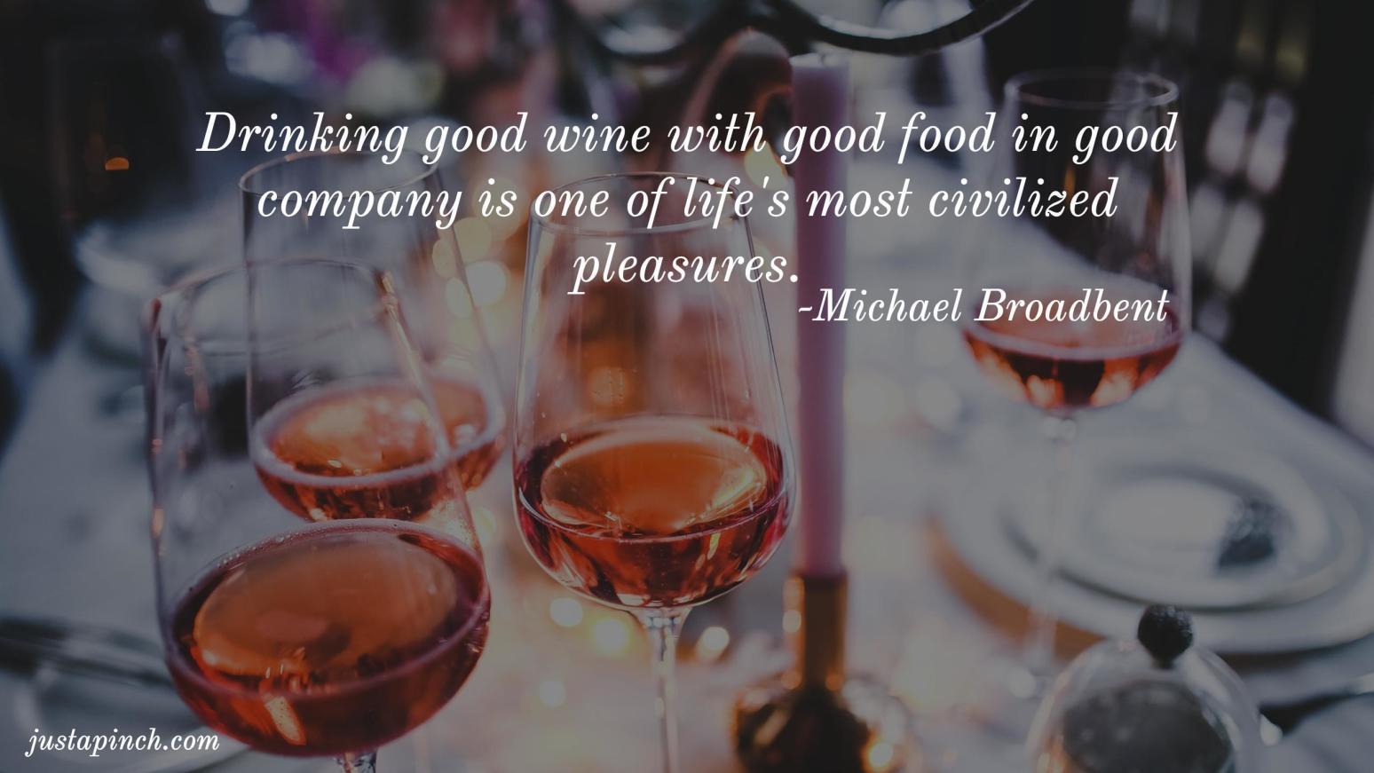 Drinking good wine with good food in good company is one of life’s most civilized pleasures. Share on Facebook Share on Pinterest Share on X Share in Email Print