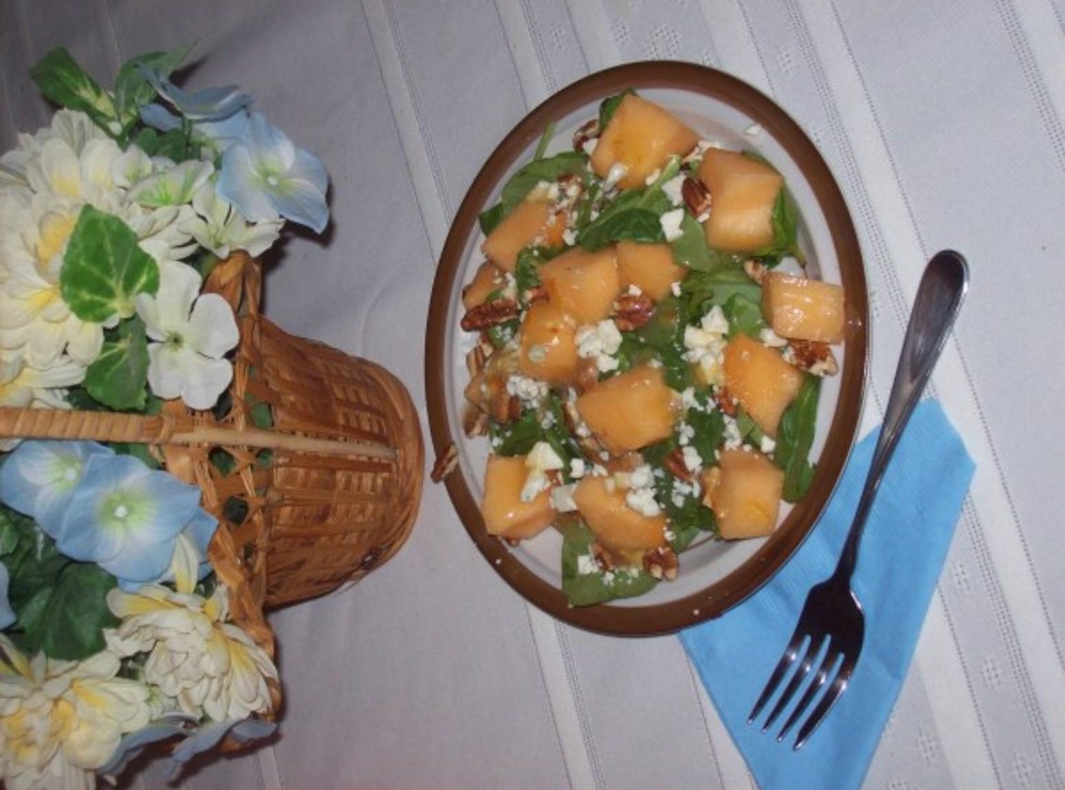 Melon, Mache & Pecan Salad with Peach Vinaigrette