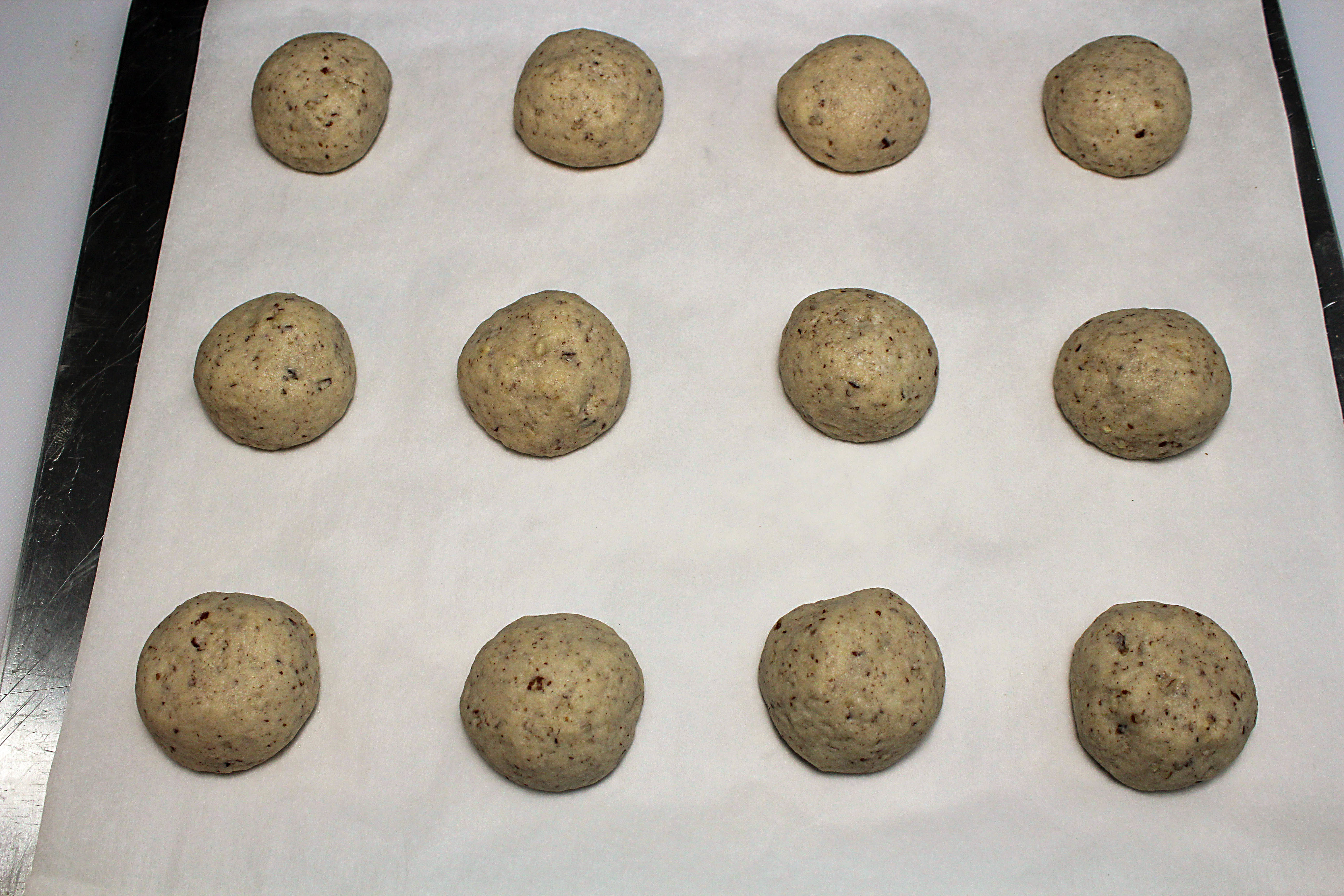 Snowball cookies out of the oven.