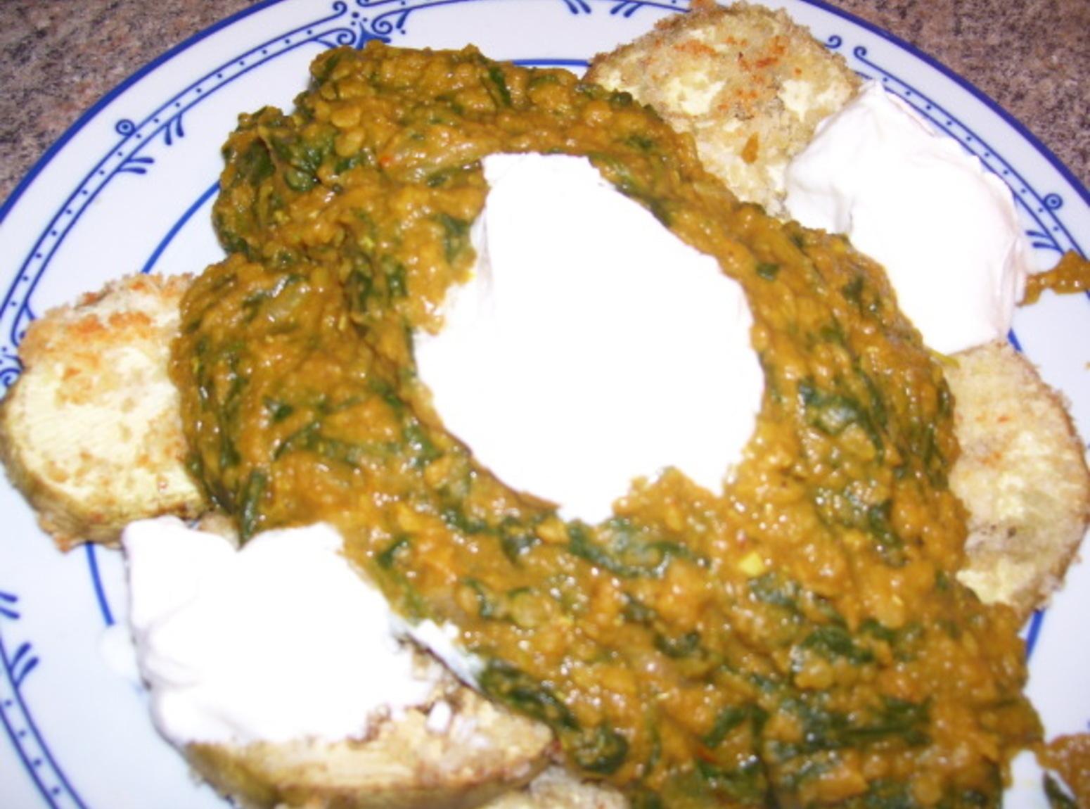 Photos of Spinach & Red Lentil Curry on Roasted Eggplant