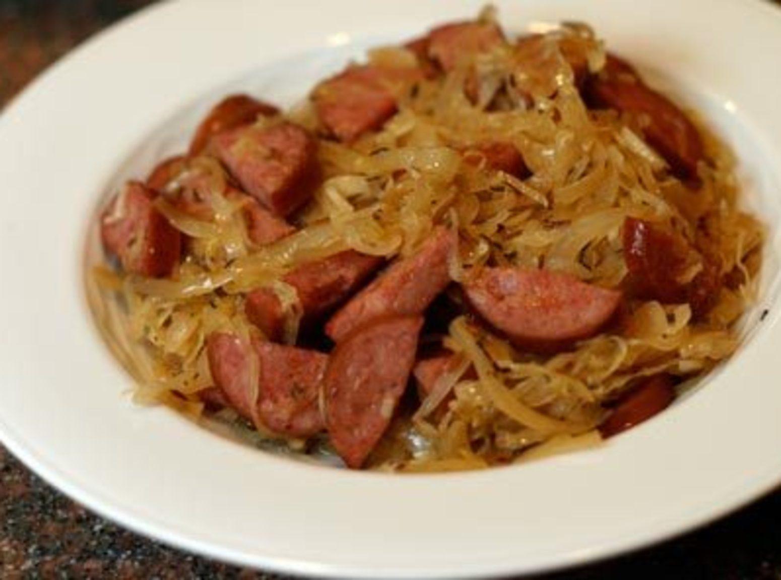 Sauerkraut, sausage and dumplings