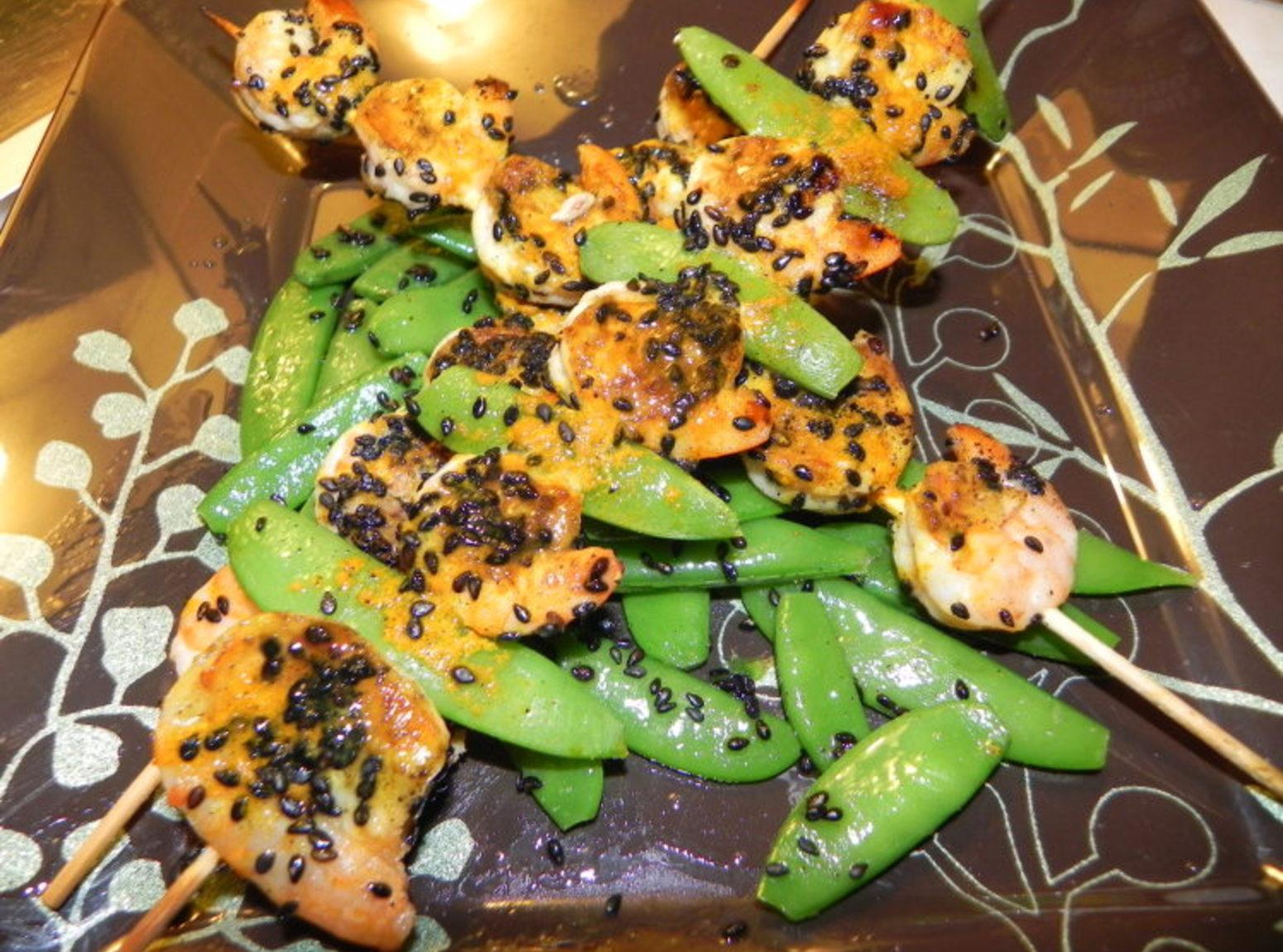 Photos of Grilled Shrimp Skewers with Sugar Snap Peas