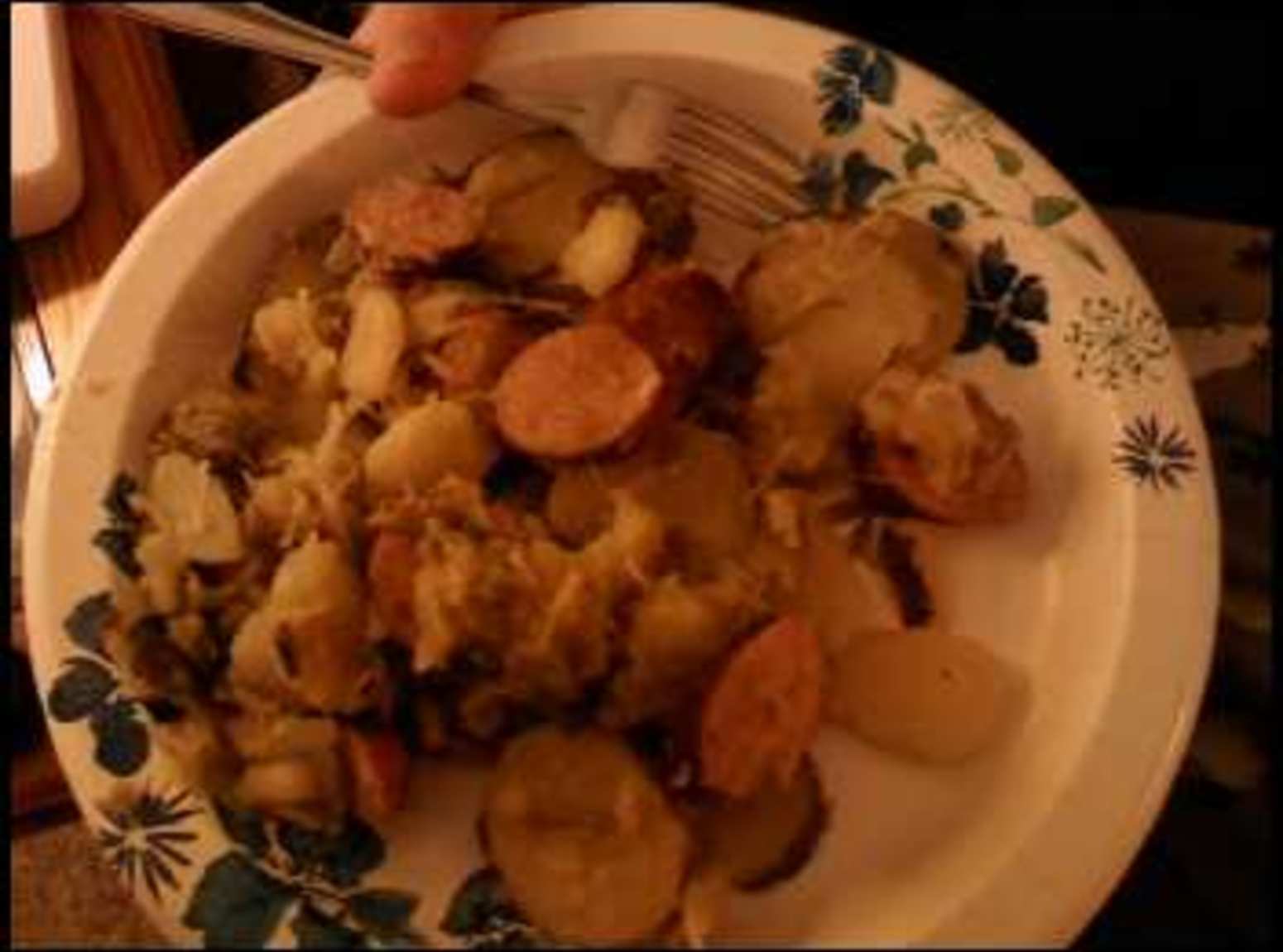 Photos of Sauerkraut, sausage, greenbeans and fried potatoes