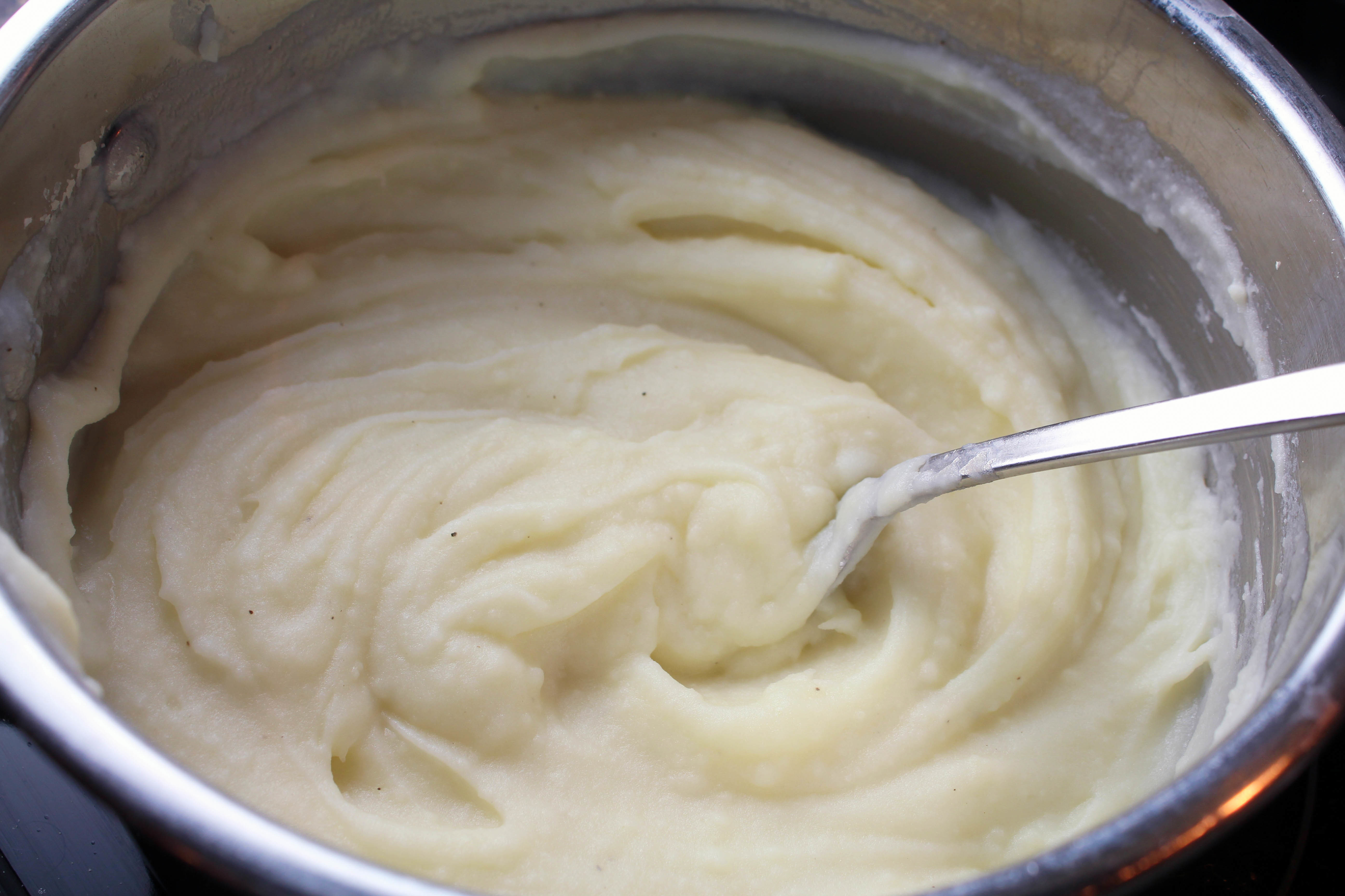 Preparing the mashed potatoes.