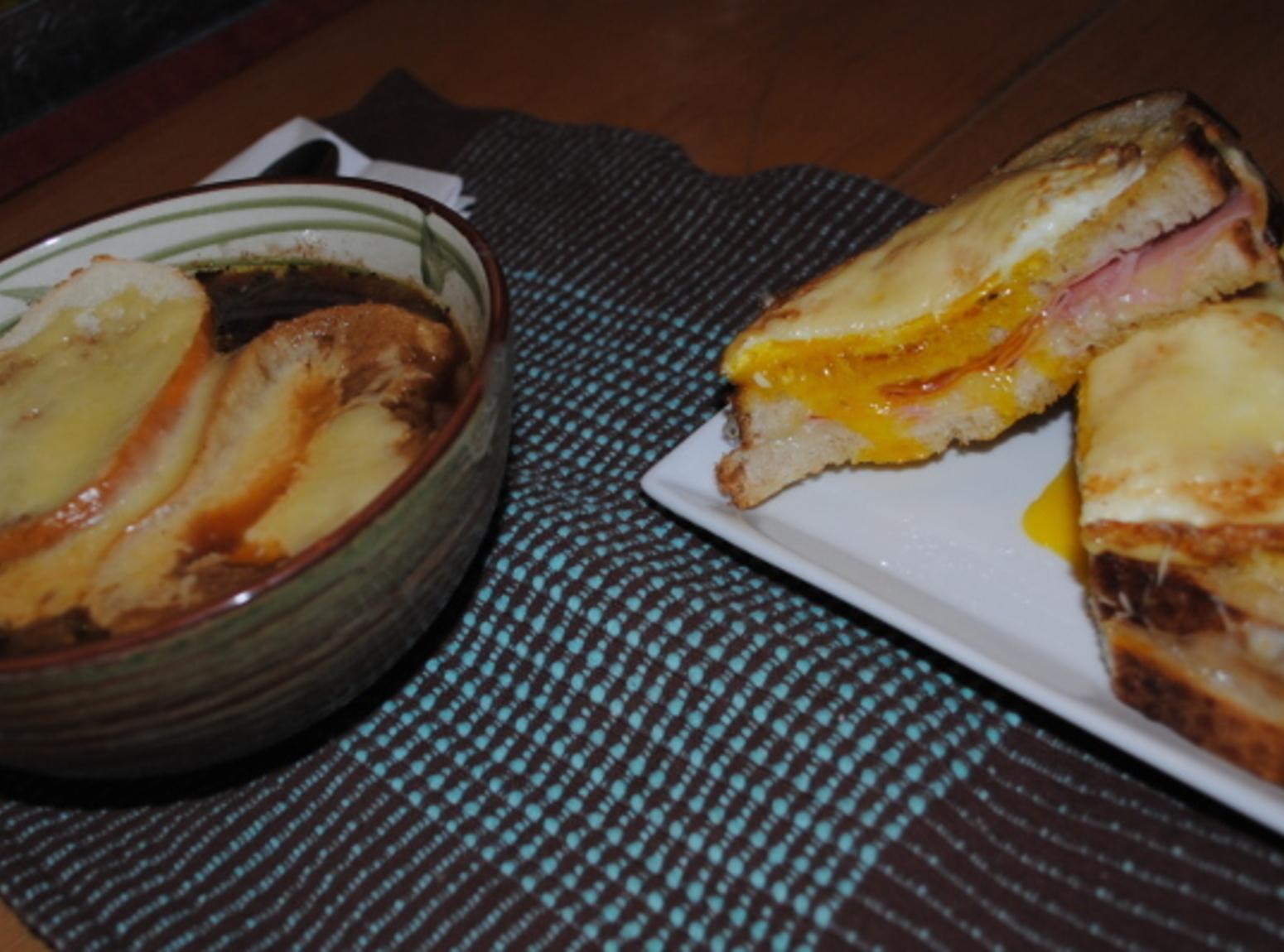 Photos of French Onion Soup with Grilled Ham & Cheese Sandwich- French Style