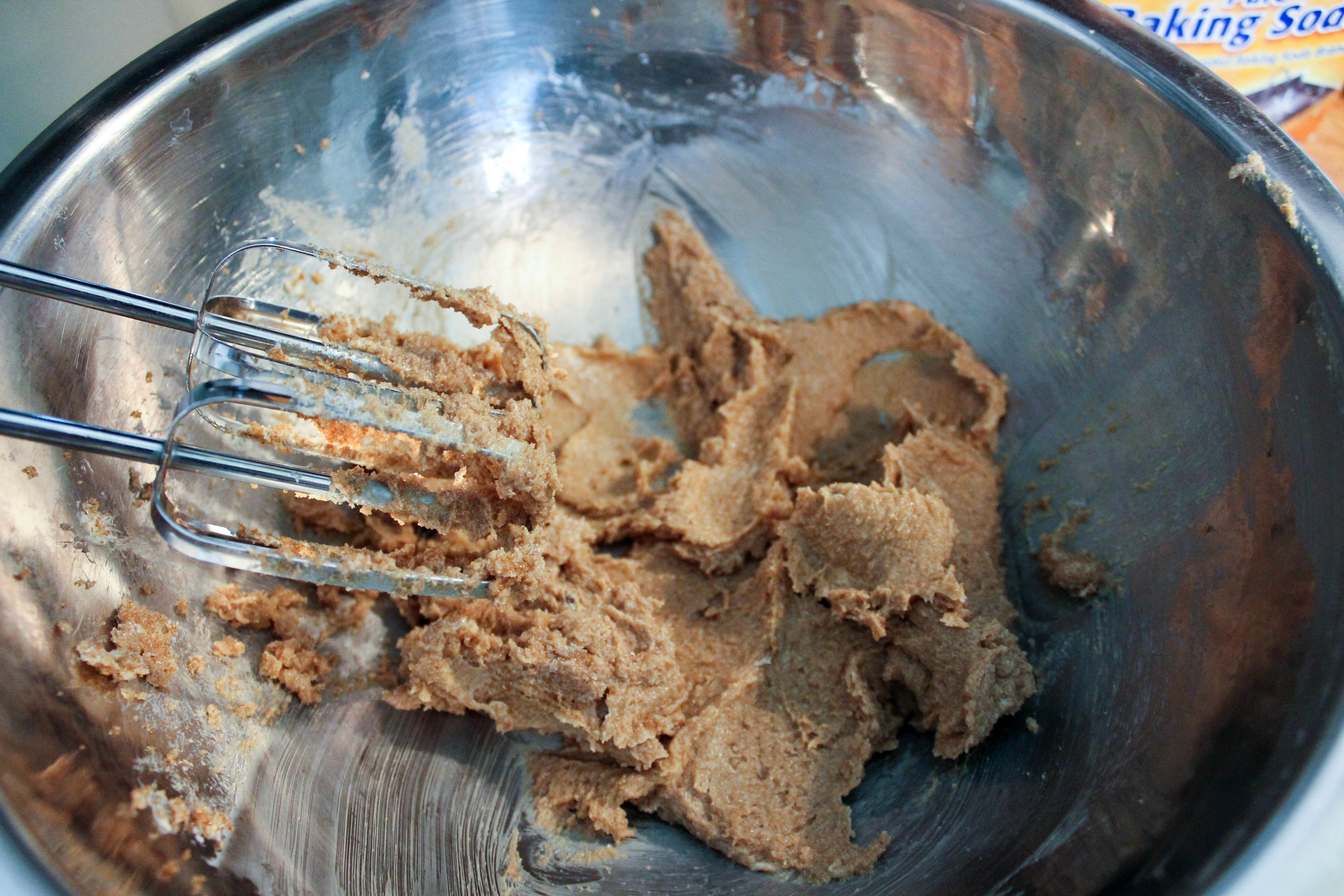 Creaming butter and sugar.