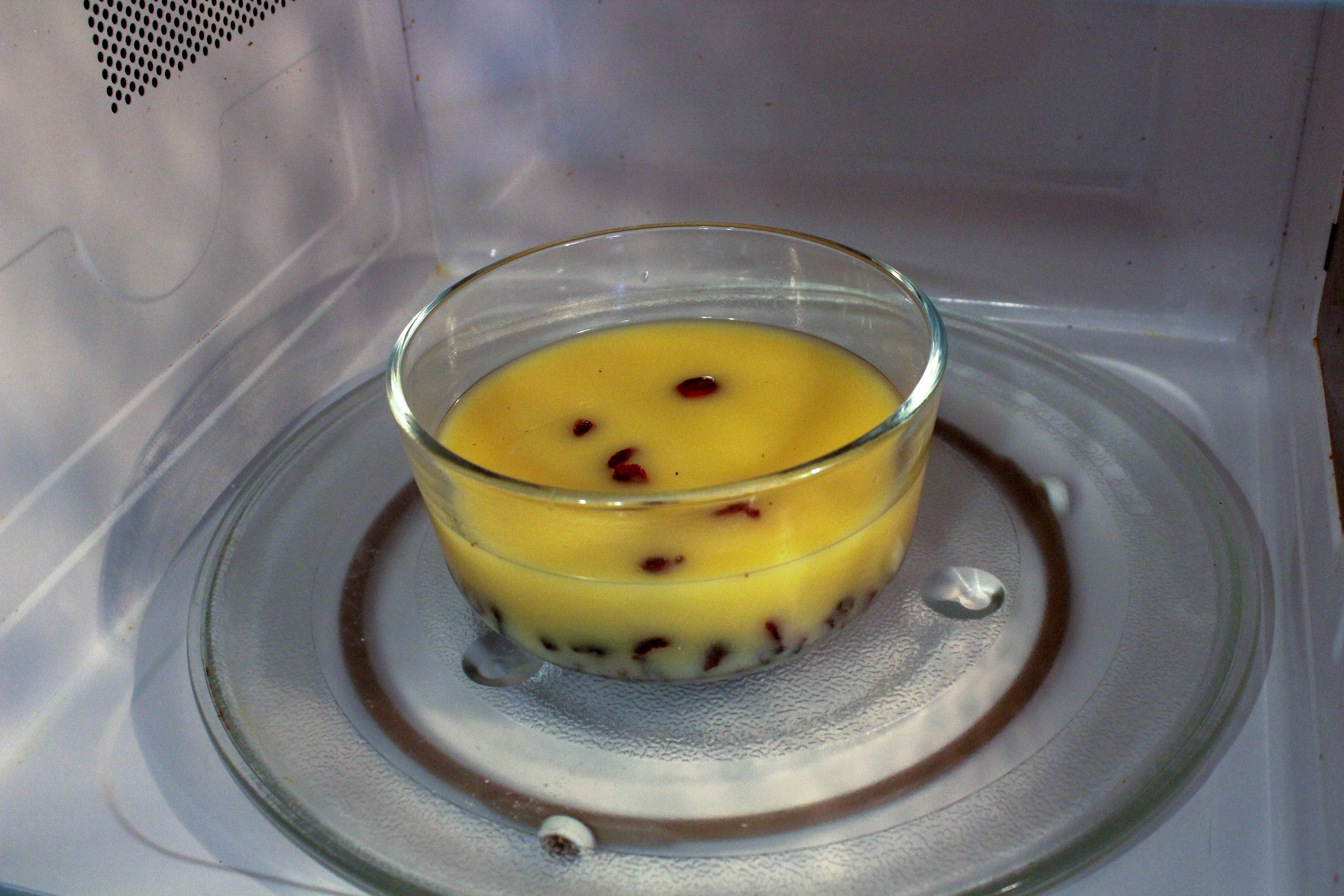 Microwaving cranberries in orange juice.