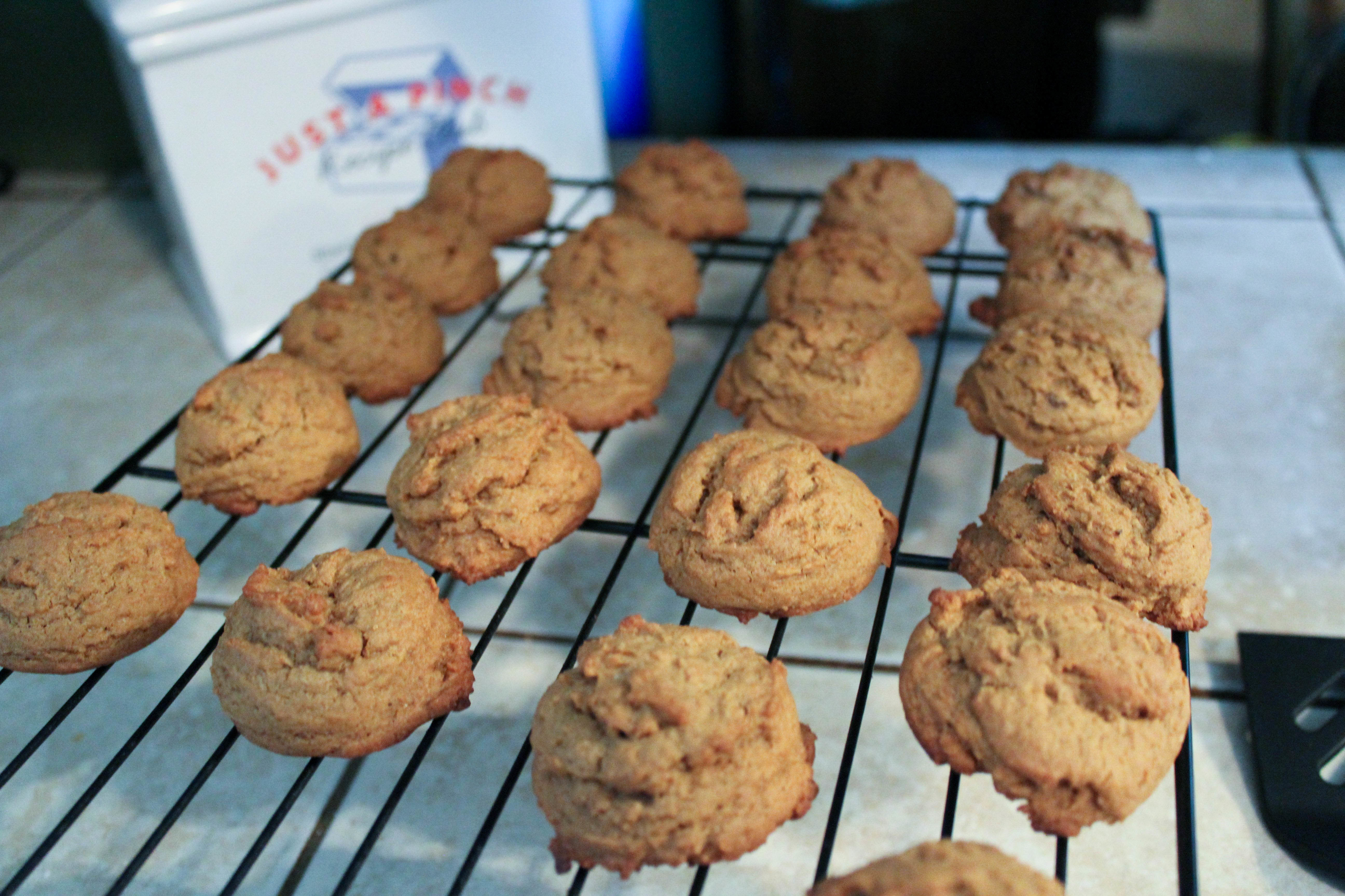 Cookies cooling on a wire rack.