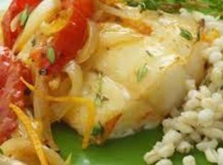 Photos of Roasted Cod Fish, Tomatoes, Orange & Onions