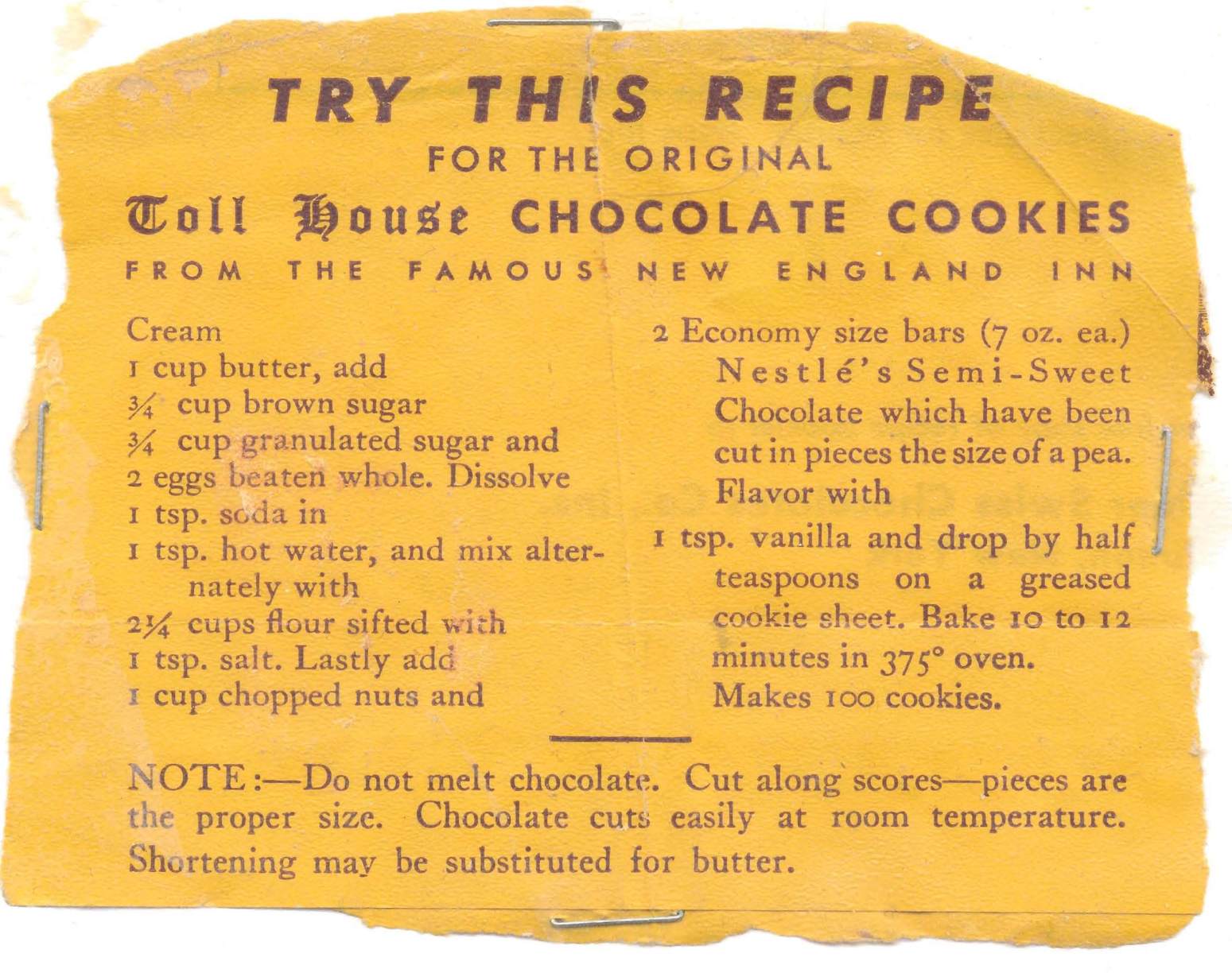 ABSOLUTELY ORIGINAL TOLL HOUSE CHOCOLATE COOKIES
