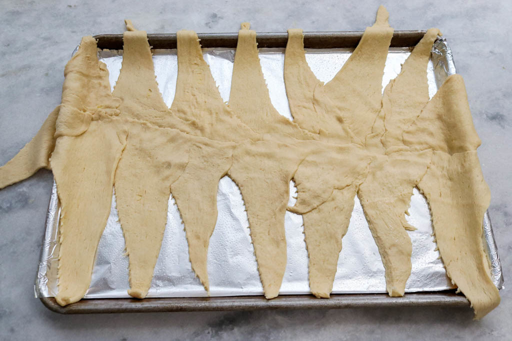 Lay out crescent dough with slits to form a triangle.