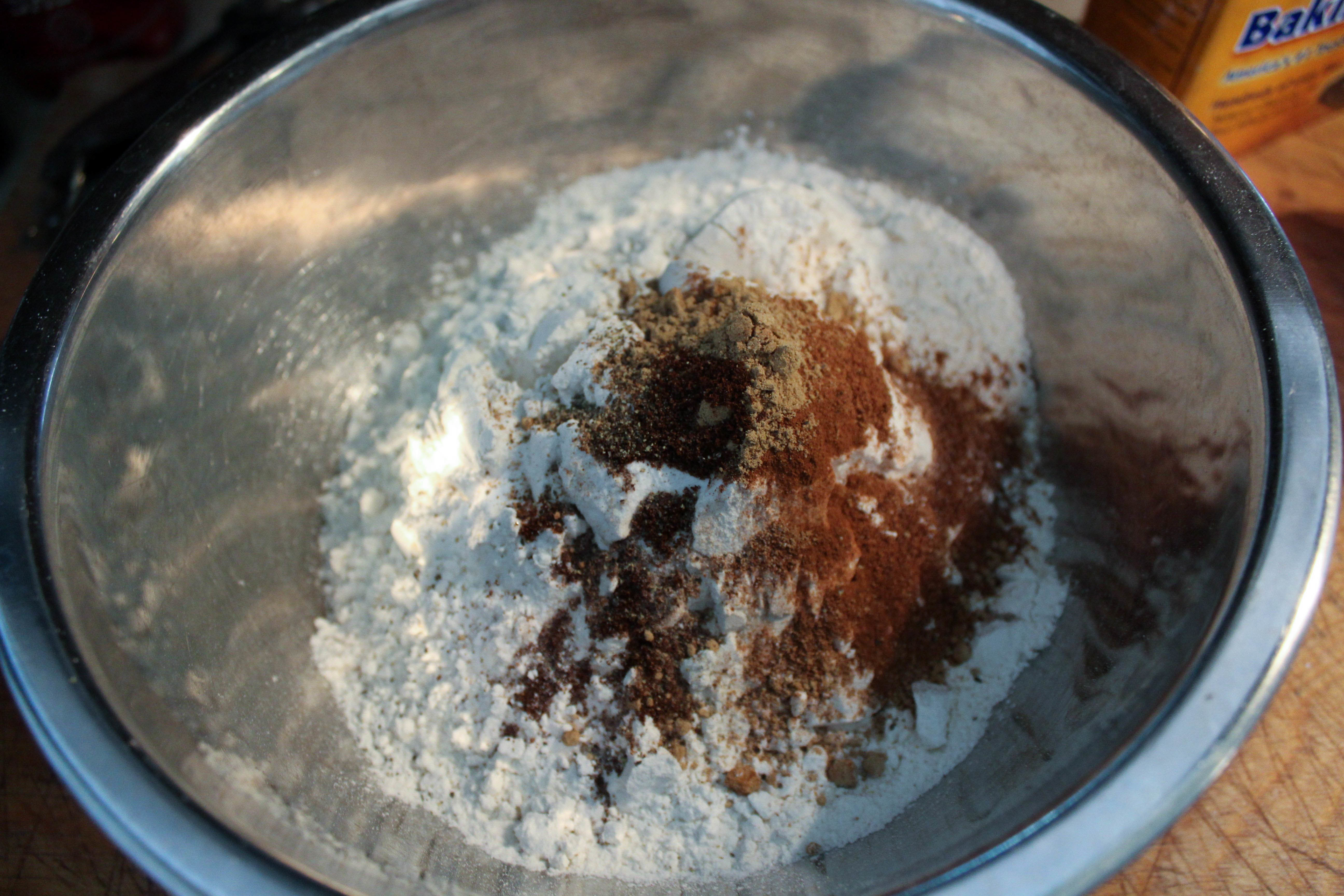 Dry ingredients added to a bowl.