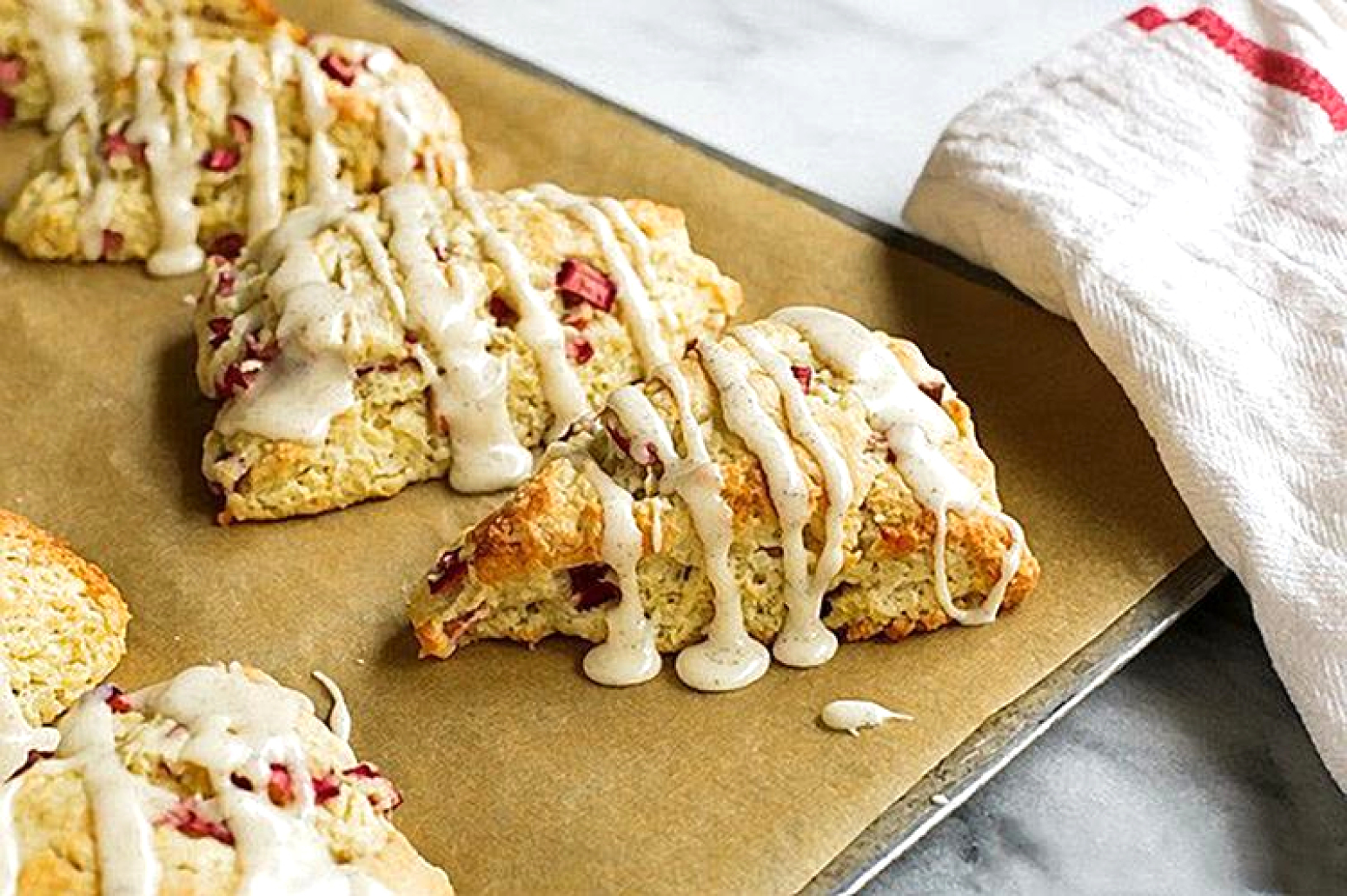 Photos of Lemon Rhubarb Scones with Vanilla Bean Glaze