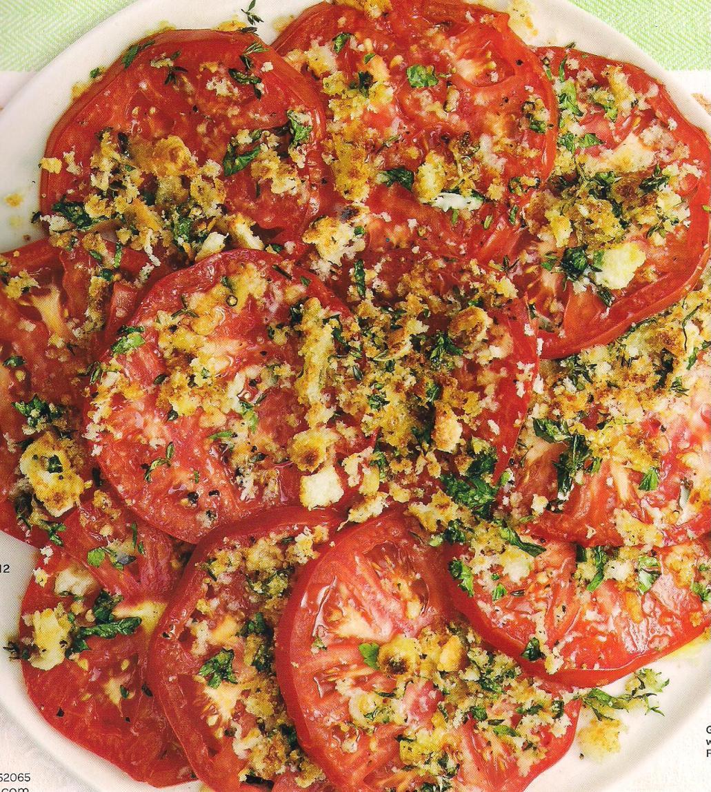 Photos of Gratineed tomatoes with asiago and fresh herbs