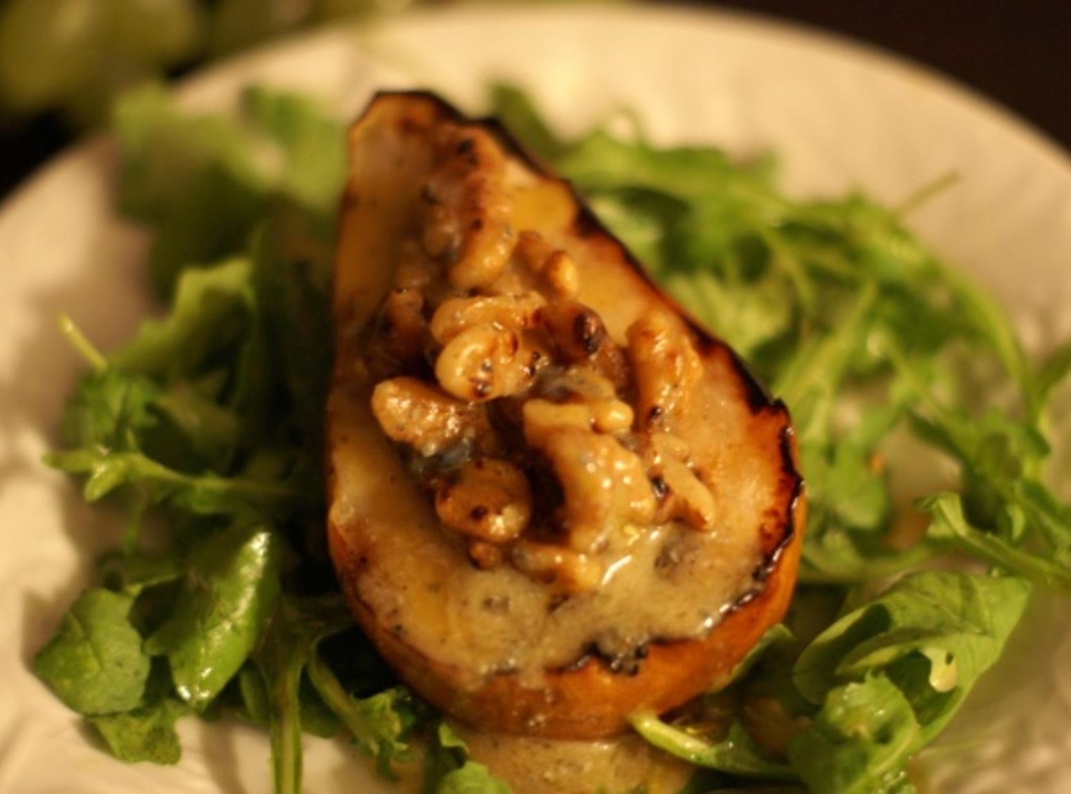 Photos of Grilled Pear Salad with Gorgonzola, Walnuts and Spicy Mustard Vinaigrette