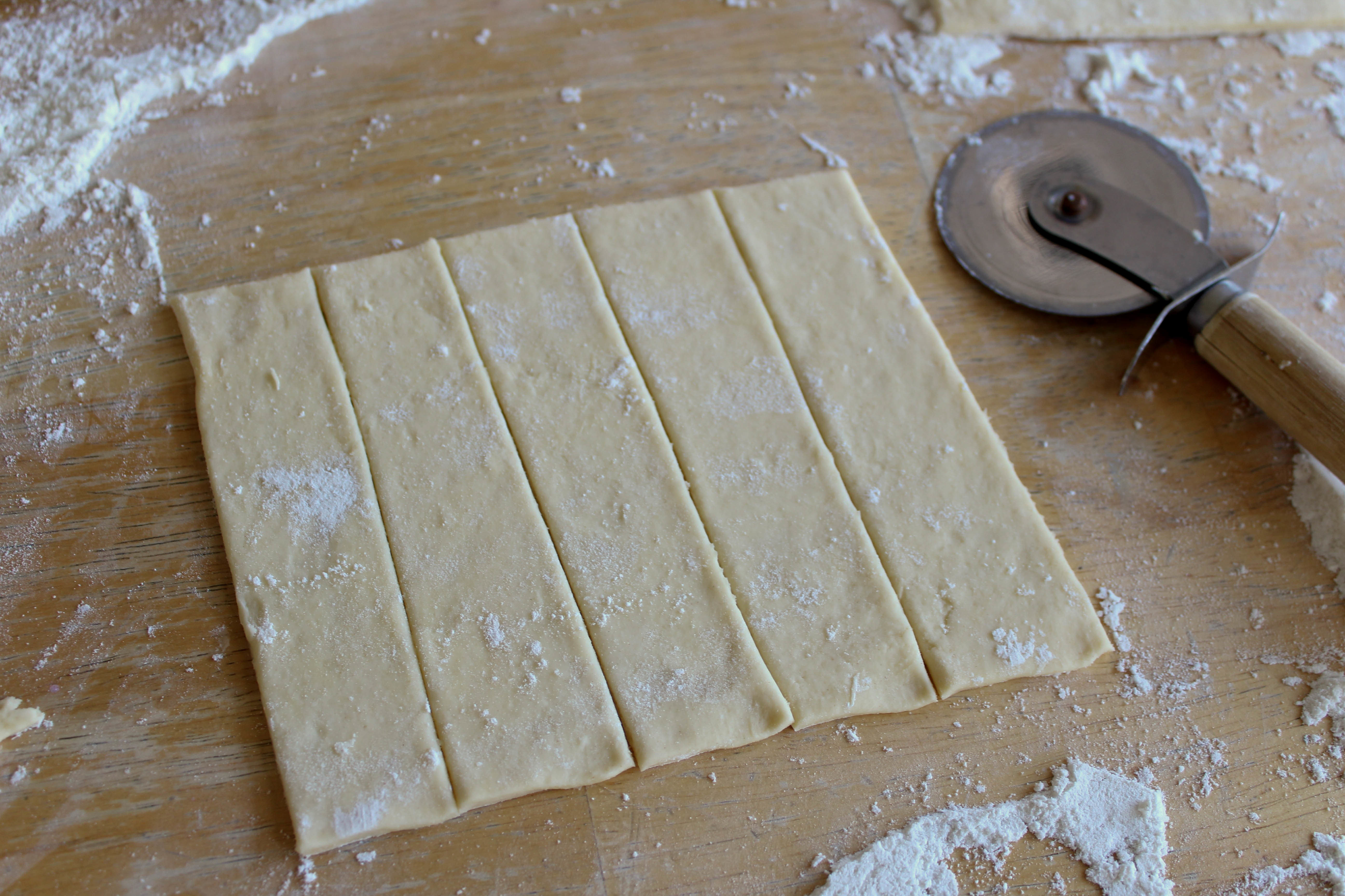 Cutting the dough into strips.