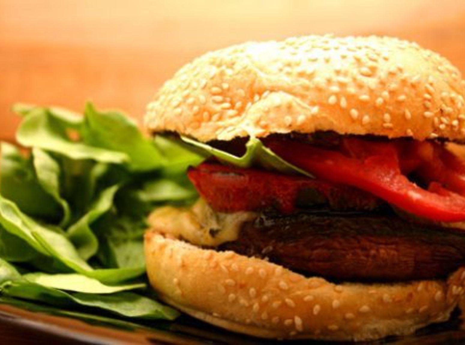 Photos of Grilled Portobello Sandwich with Roasted Red Pepper and Mozzarella