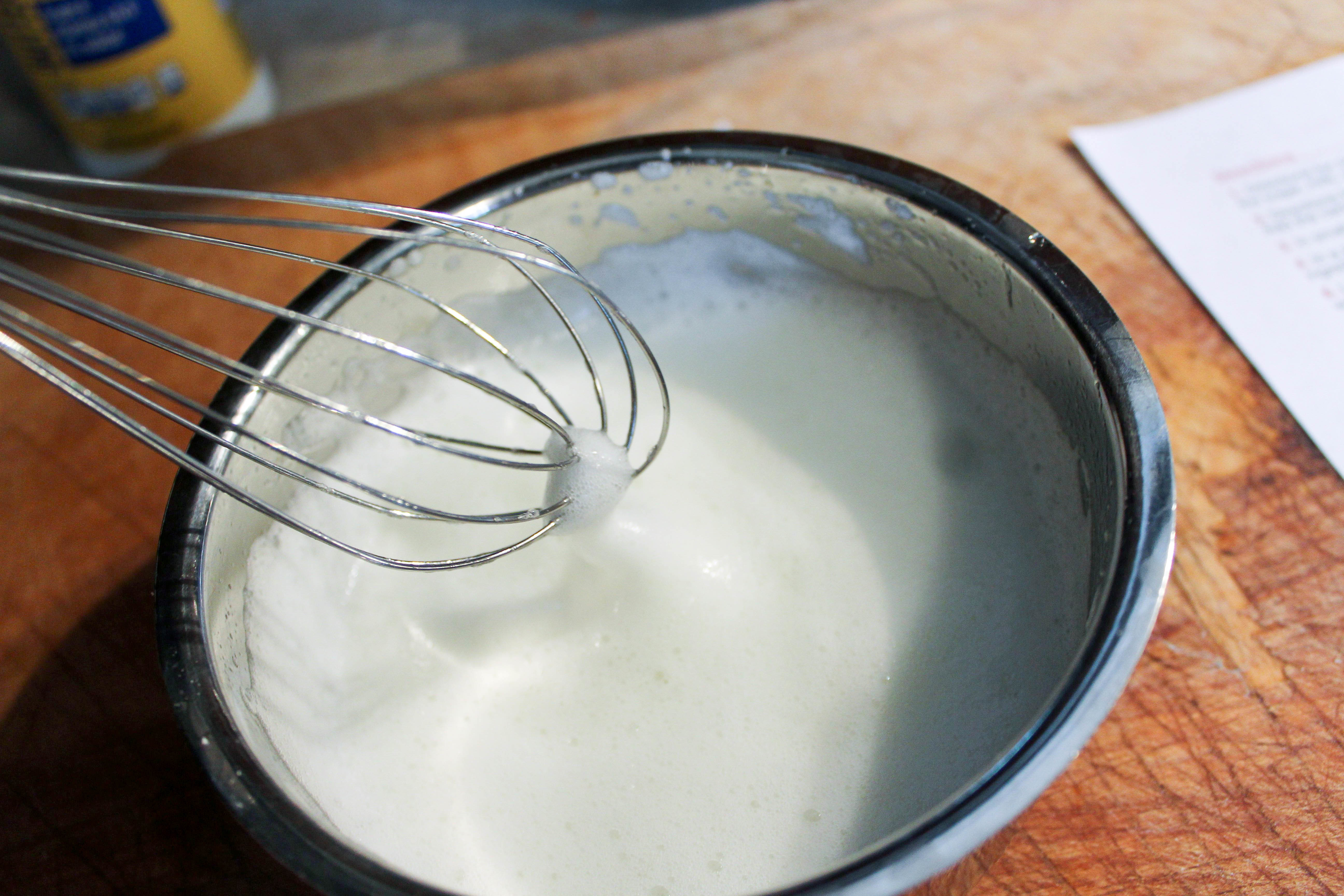 Beating egg whites until stiff.