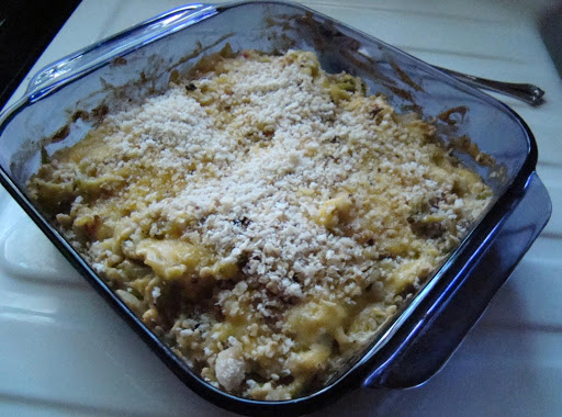 Step 2Place cooked fettuccine and crumbled tuna in 1-1/2 quart casserole dish, pour sauce over, gently toss until well coated.